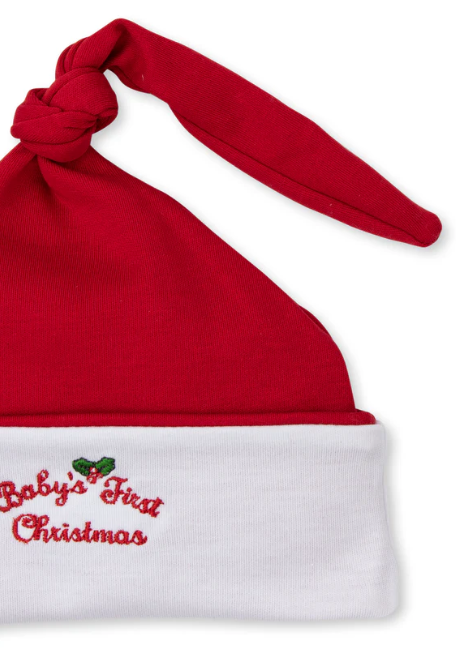 Keep baby’s head warm, covered, and cozy during their first Christmas. Our stocking hat is complete with embroidered details to mark the occasion.