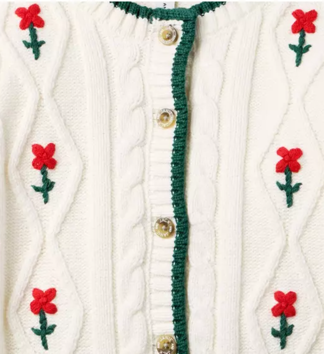 - A classic cardigan to wear everywhere, all season long. Designed with embroidered florals, cable knit details and ribbed trim.