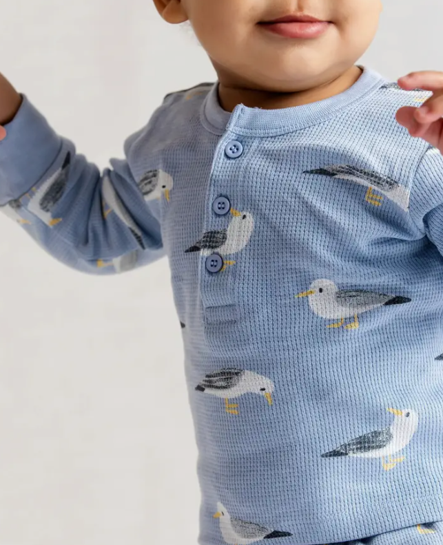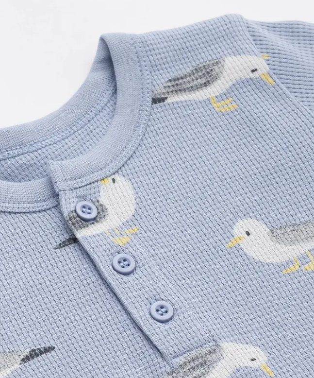 Details + Care:: * 100% organic cotton (waffle texture) * front placket with buttons * pants with panel at crotch * lead, phthalate, and flame-retardant free * GOTS certified; the leading environmental standard for organic textiles * machine wash; tumble dry low