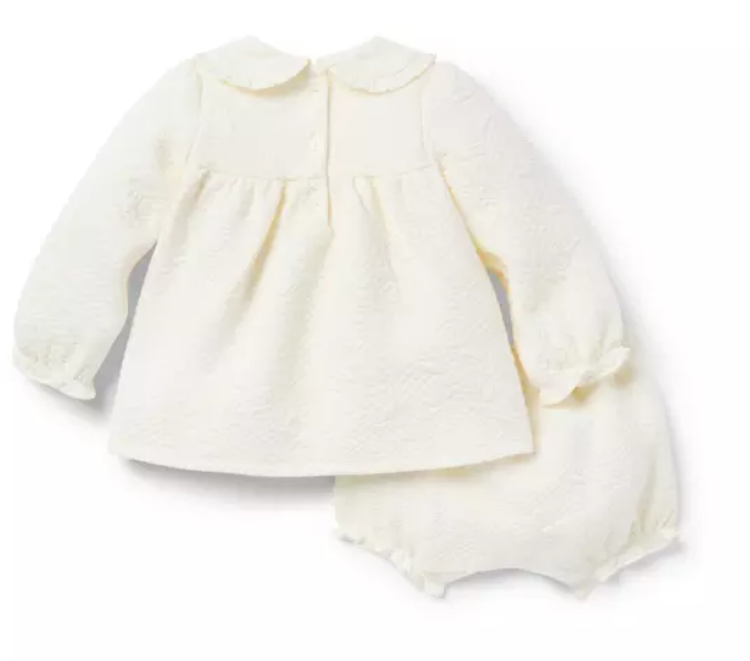 - Crafted for those first moments to remember, our quilted floral set is the perfect match. Designed with a ruffle trimmed collar and a little velvet bow.