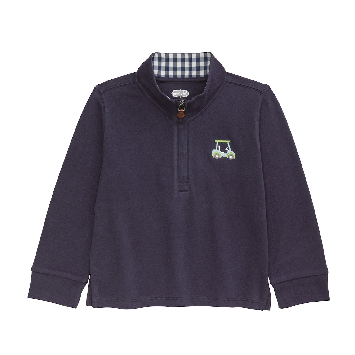 The Golf Quarter Zip is a charming and stylish pullover designed for young children. This embroidered interlock pullover showcases a quarter zip neckline, adding both functionality and flair. The gingham lining provides a classic touch, while the side vent hem ensures comfort and ease of movement. This pullover is crafted from 100% cotton, offering softness and breathability for your little one's everyday adventures.