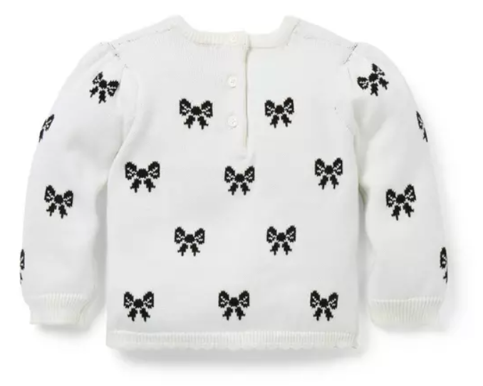 Our soft sweater is just right for first moments. In an allover textured knit with intarsia-knit bows, puff sleeves and ribbed trim, plus a scalloped hem.