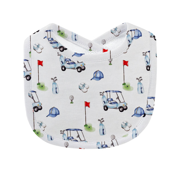 The Golf Cart Applique Terry Bib is a must-have accessory for kids that is both fun and practical. Crafted from soft and absorbent terry cloth, this bib is ideal for keeping little ones clean during mealtime or messy play. With its adorable golf cart applique design, kids will absolutely love wearing it. The bib is equipped with a convenient Velcro closure at the back, ensuring easy on and off. Its generous size offers full coverage, providing maximum protection. Not only is the Golf Cart Applique Terry Bib functional, but it is also incredibly stylish, making it an essential item for every parent or caregiver.